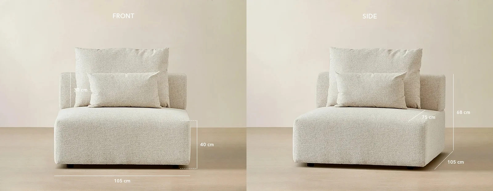 With its clean lines and armless design, this piece integrates smoothly into any configuration. Includes matching cushions enhance both support and style, making it a versatile addition to your space. Ideal for compact living or expanding arrangements.