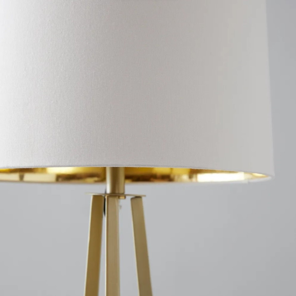 Complementing this compelling structure is a white shade, chosen to balance the bold geometry. A hidden touch of luxury lies within—the inner side of the shade is lined with gold, subtly reflecting a warm, inviting ambience throughout the room.