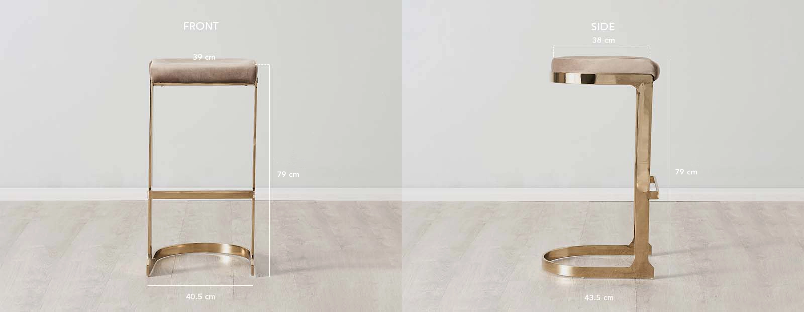 Beneath this captivating seat lies a masterfully crafted champagne gold-coloured frame. The elegance of this frame, with its unmistakable art-deco-inspired design, brings a level of sophistication to the stool while ensuring robust support. Expertly integrated into this shimmering framework is a comfortable footrest, elevating the user experience by offering added comfort during extended periods of seating. Let the Rouven Bar Stool serve as your stage as the drinks pour and conversations unfold.