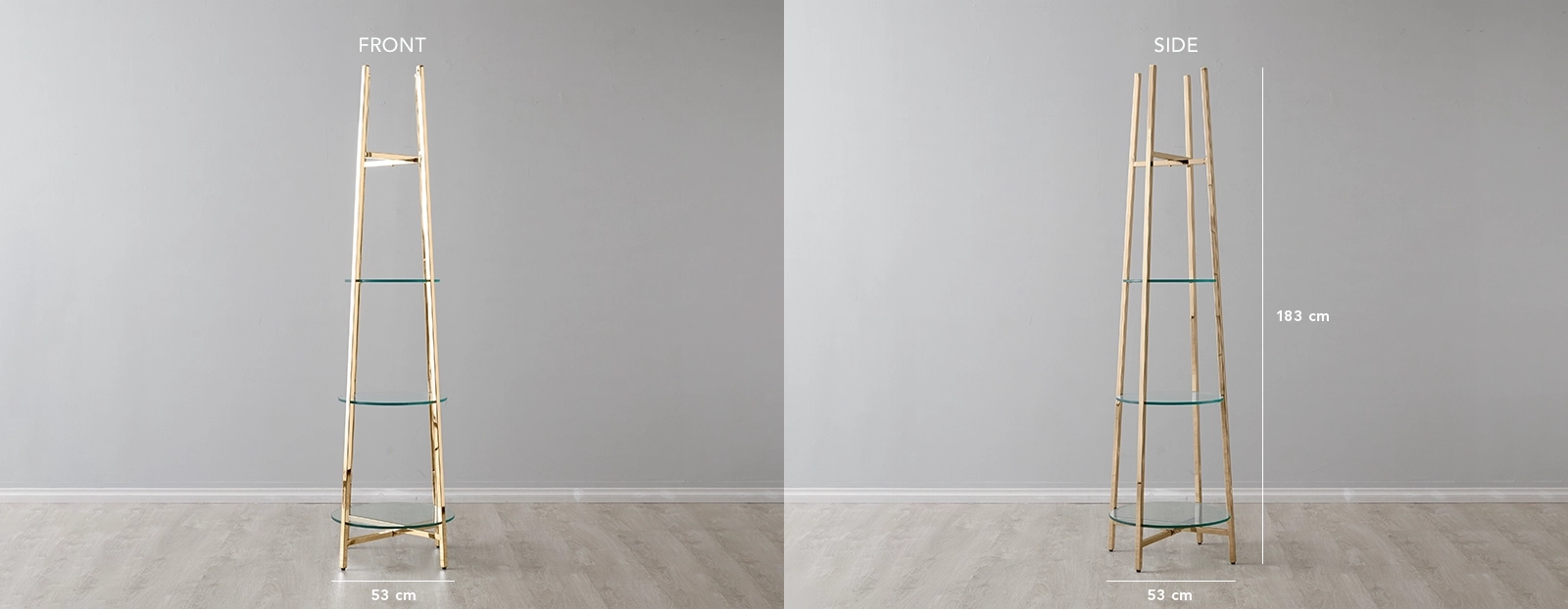 The display area consists of three circular glass shelves, perfect for showcasing trophies, mementos, or keepsakes. Pair it with one of our floor lamps to enhance and highlight your collection.