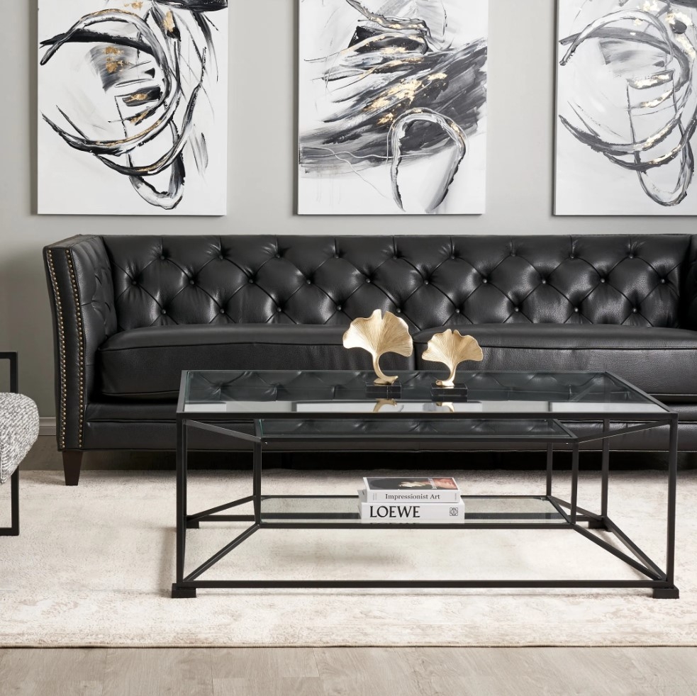Russell Black Leather 3-Seater Sofa