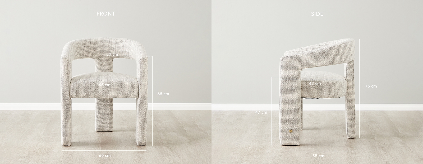The frame of the Sabrina II is more than just a structural element; it's a part of the chair's charm. Its distinctive structure stylishly curves around the back, offering a comforting embrace during dining experiences. The most notable aspect of the Sabrina II, however, remains its innovative three-legged design, which adds a contemporary and artistic flair. The Sabrina is ideally paired in twos and matches beautifully with a range of stylish dining tables, enhancing the overall dining environment.
