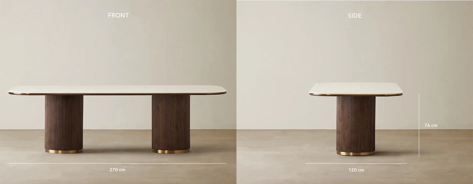 Through the San Pierre collection, Koala Living showcases Emily McAlister's unique ability to draw inspiration from the past and seamlessly integrate it into modern design, creating pieces that are both timeless and contemporary. During her travels through ancient streets, Emily was mesmerized by the vibrant fusion of history and modernity. Inspired by towering columns, intricate metalwork, and enchanting aromas, she meticulously wove these elements into the San Pierre collection. Each table in this collection features a sintered stone top with a travertine finish, beautifully reflecting the timeless charm of aged architecture. The base of each table, designed with walnut veneer creating vertical reeding, adds a dynamic and sophisticated presence. Emily's design philosophy places a strong emphasis on functionality and human connection. This is evident in the San Pierre collection, where each piece is crafted to enhance everyday moments and bring a touch of elegance to any space. The well-crafted tables in the collection are not only visually stunning but also highly practical, embodying Emily's vision of creating designs that are both beautiful and useful.