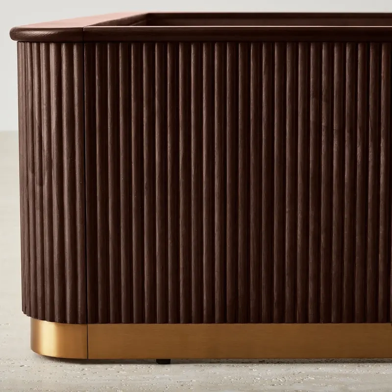 Through the San Pierre collection, Koala Living showcases Emily McAlister's unique ability to draw inspiration from the past and seamlessly integrate it into modern design, creating pieces that are both timeless and contemporary. During her travels through ancient streets, Emily was mesmerized by the vibrant fusion of history and modernity. Inspired by towering columns, intricate metalwork, and enchanting aromas, she meticulously wove these elements into the San Pierre collection. Each table in this collection features a sintered stone top with a travertine finish, beautifully reflecting the timeless charm of aged architecture. The base of each table, designed with walnut veneer creating vertical reeding, adds a dynamic and sophisticated presence. Emily's design philosophy places a strong emphasis on functionality and human connection. This is evident in the San Pierre collection, where each piece is crafted to enhance everyday moments and bring a touch of elegance to any space. The well-crafted tables in the collection are not only visually stunning but also highly practical, embodying Emily's vision of creating designs that are both beautiful and useful.
