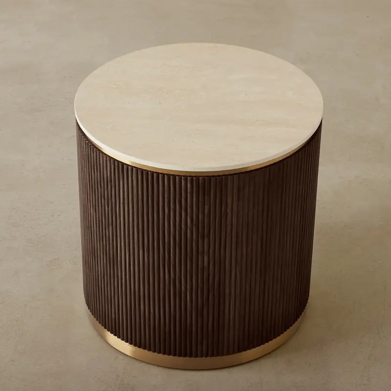 San Pierre Ebony Brown Ash Veneer Side Table - Travertine Finish Sintered Stone Top