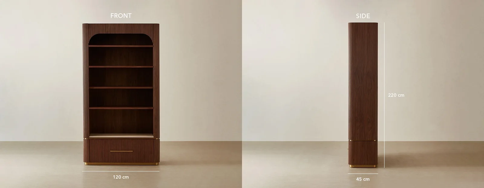 The San Pierre II Bookshelf transforms storage into a bold design feature. Open shelving provides a sleek stage for books and decor, framed by vertical reeding for depth and texture.