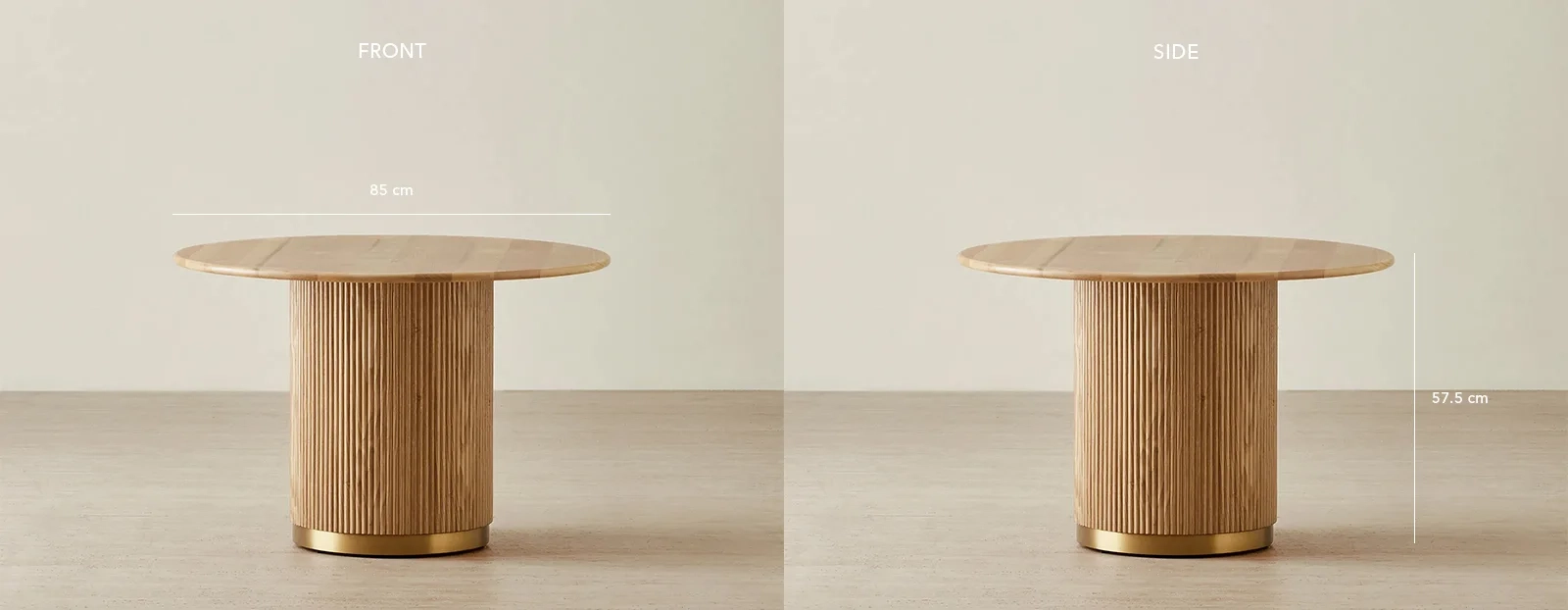 A fluted base adds texture and charm, anchored by a golden metal trim that gives it a polished, playful finish. Designed with soft edges, this table turns any space into a place for imagination and connection.