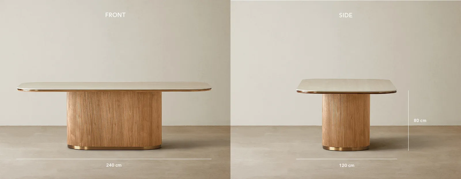 Through the San Pierre collection, Koala Living showcases Emily McAlister's unique ability to draw inspiration from the past and seamlessly integrate it into modern design, creating pieces that are both timeless and contemporary. During her travels through ancient streets, Emily was mesmerized by the vibrant fusion of history and modernity. Inspired by towering columns, intricate metalwork, and enchanting aromas, she meticulously wove these elements into the San Pierre collection. Each table in this collection features a sintered stone top with a travertine finish, beautifully reflecting the timeless charm of aged architecture. The base of each table, designed with walnut veneer creating vertical reeding, adds a dynamic and sophisticated presence. Emily's design philosophy places a strong emphasis on functionality and human connection. This is evident in the San Pierre collection, where each piece is crafted to enhance everyday moments and bring a touch of elegance to any space. The well-crafted tables in the collection are not only visually stunning but also highly practical, embodying Emily's vision of creating designs that are both beautiful and useful.