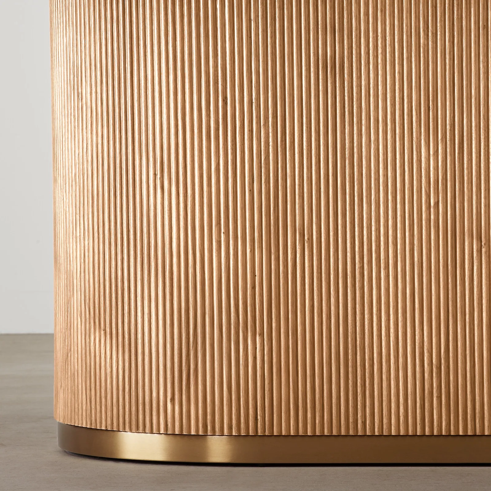 The opulent golden outline gracefully frames the table and its columns, adding a regal touch that complements the Light Brown Ash veneer. Anchored by a stately wide column with intricate vertical reeding.