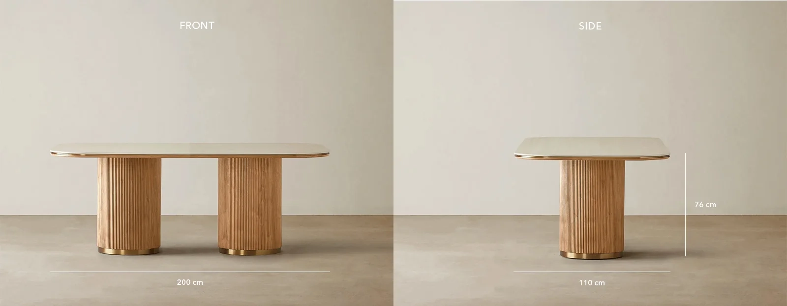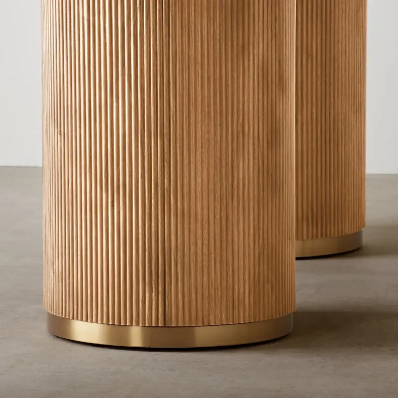 Through the San Pierre collection, Koala Living showcases Emily McAlister's unique ability to draw inspiration from the past and seamlessly integrate it into modern design, creating pieces that are both timeless and contemporary. During her travels through ancient streets, Emily was mesmerized by the vibrant fusion of history and modernity. Inspired by towering columns, intricate metalwork, and enchanting aromas, she meticulously wove these elements into the San Pierre collection. Each table in this collection features a sintered stone top with a travertine finish, beautifully reflecting the timeless charm of aged architecture. The base of each table, designed with walnut veneer creating vertical reeding, adds a dynamic and sophisticated presence. Emily's design philosophy places a strong emphasis on functionality and human connection. This is evident in the San Pierre collection, where each piece is crafted to enhance everyday moments and bring a touch of elegance to any space. The well-crafted tables in the collection are not only visually stunning but also highly practical, embodying Emily's vision of creating designs that are both beautiful and useful.
