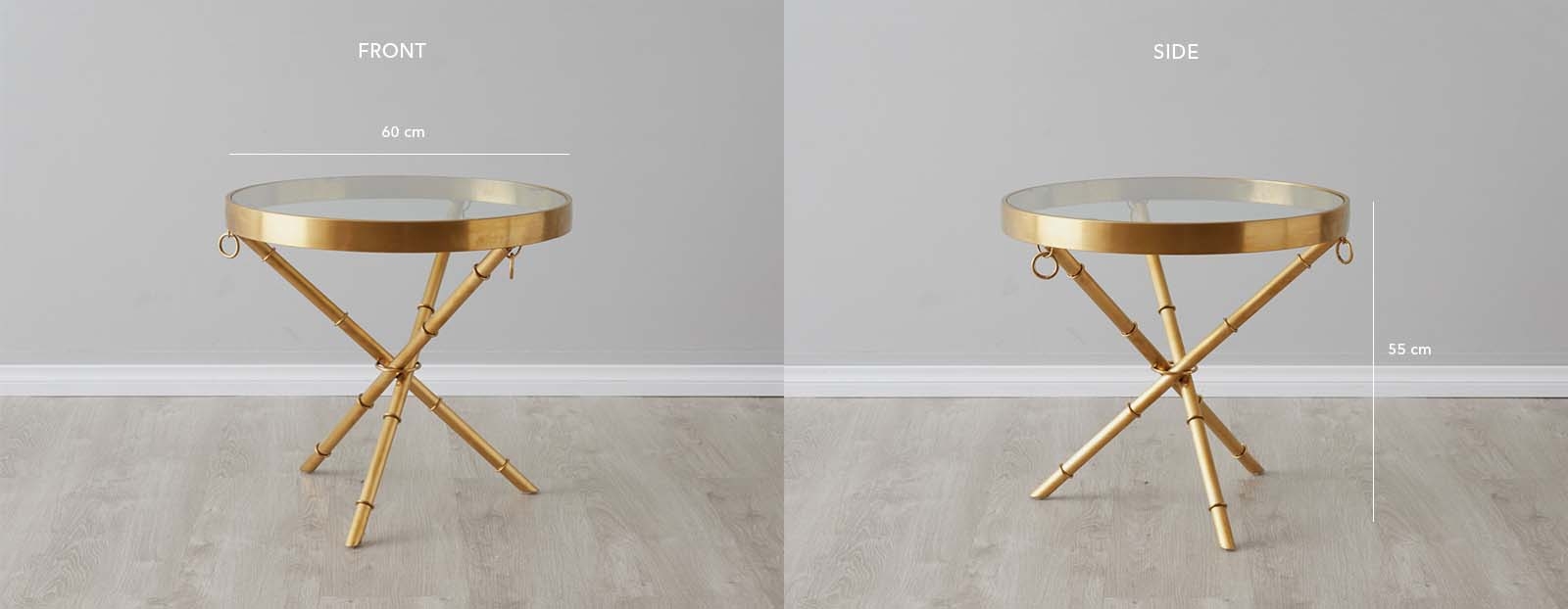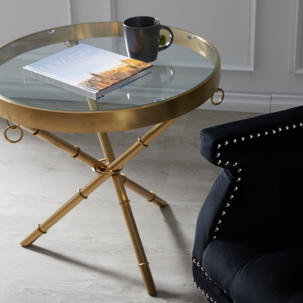 It also can serve as a display area for your favourite books and other decor. Its high-quality circular tempered glass table top is supported by well-crafted stainless steel tripod legs. Each leg mimics the aesthetic of bamboo as they are embellished with stylish golden rings. Pair the Sandringham with one of our occasional chairs and floor lamps for a luxurious reading room.