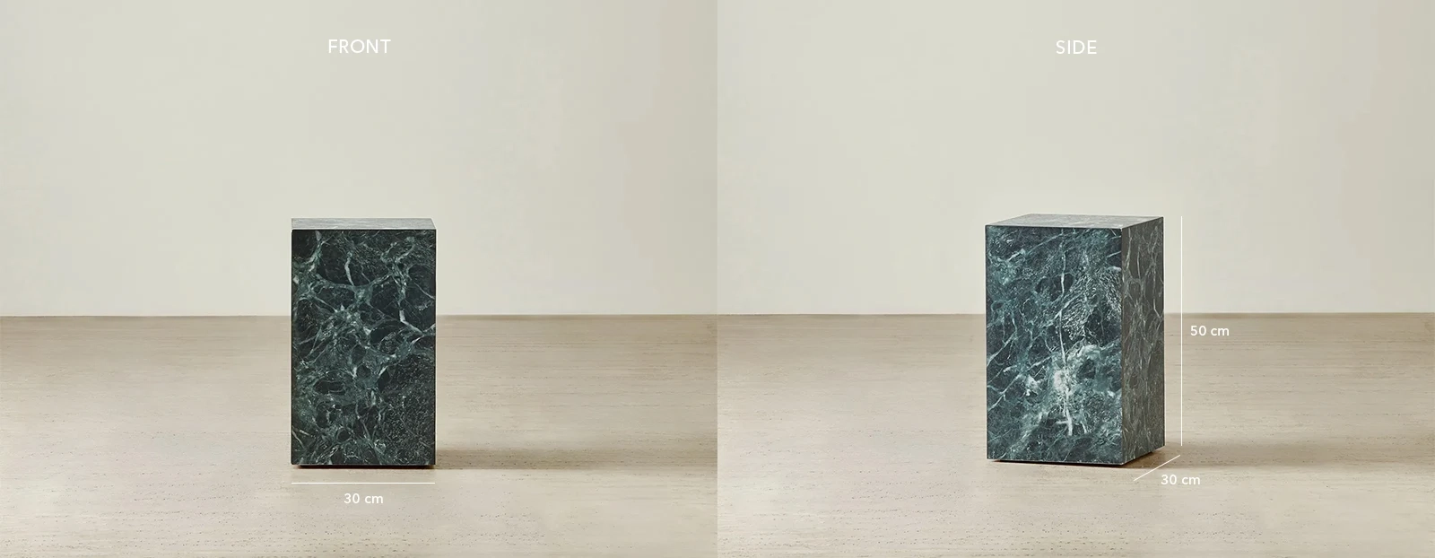 Its rich emerald surface adds depth and a natural stone look without overwhelming the surroundings. Ideal as a display base, side table, or standalone accent piece.