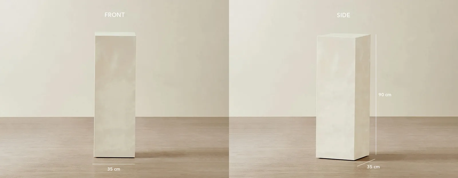 The Santorini Sintered Stone Plinth features a bold, architectural silhouette that grounds any interior. Crafted from durable sintered stone with a sleek, refined finish.
