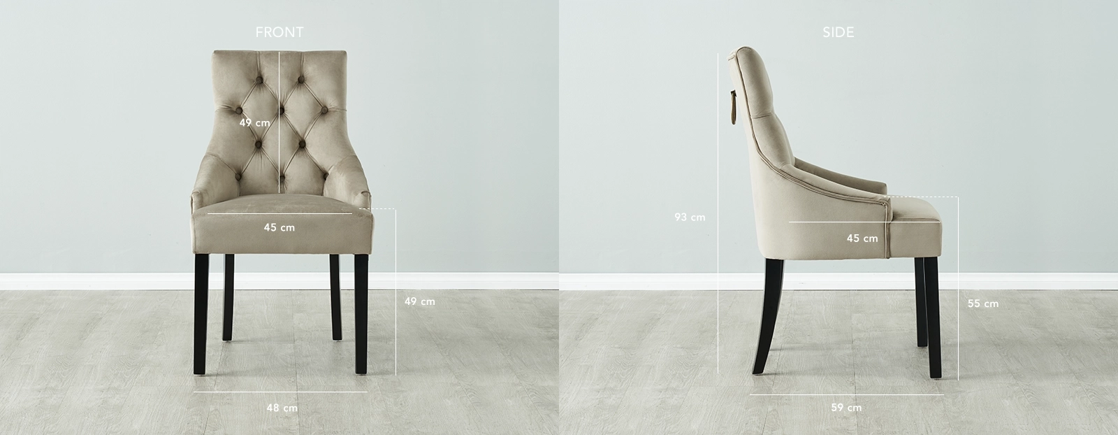 Enhance your dining space with the timeless elegance of the Saxon Beige Velvet Dining Chair. This chair embodies the perfect balance of style and comfort, creating a luxuriously inviting atmosphere with its modern cottage aesthetic. The artistically crafted wooden frame of the Saxon chair exudes a vintage charm. The timeless beige-coloured velvet upholstery complements the frame, creating a harmonious and inviting look. Experience utmost comfort as you dine with the Saxon chair's layer of dense foam padding.
