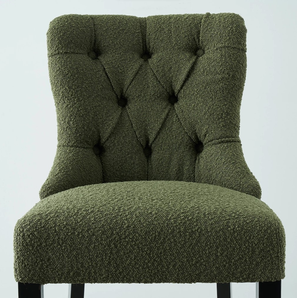 Introduce a touch of opulent comfort to your home bar and dining area with the exquisite Saxon Olive Green Boucle Bar Stool. Succumb to the irresistible allure of its inviting aesthetic, beautifully showcased by the richly textured boucle fabric seat. The Saxon Olive Green Boucle Bar Stool is designed to envelop you in a luxurious seating experience. Beneath the dreamlike boucle fabric lies dense foam padding, meticulously selected to provide optimal comfort. Crafted with the utmost care, the Saxon's legs are a testament to both style and functionality.