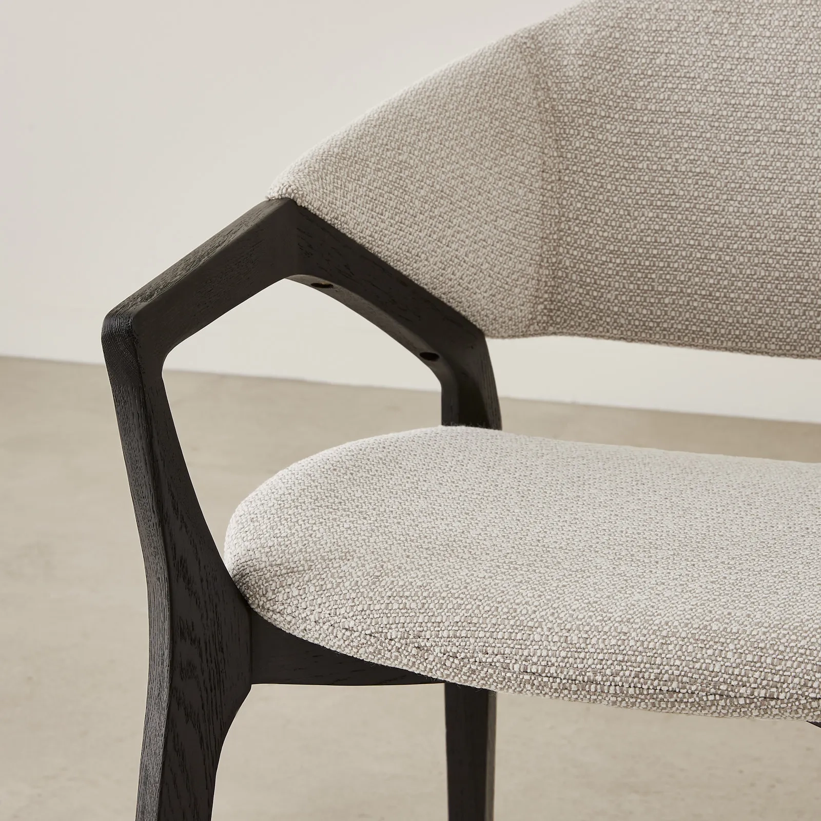 The Sebastian's black oak frame curves around the sitter, its grain adding texture and a touch of nature to the sleek design.