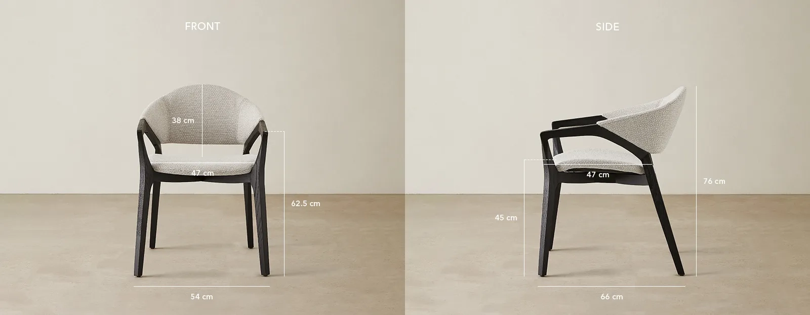 The Sebastian Dining Chair, dressed in Chrome Grey woven fabric, complements modern dining spaces with ease. Settle in for meals against its chic, angled silhouette.