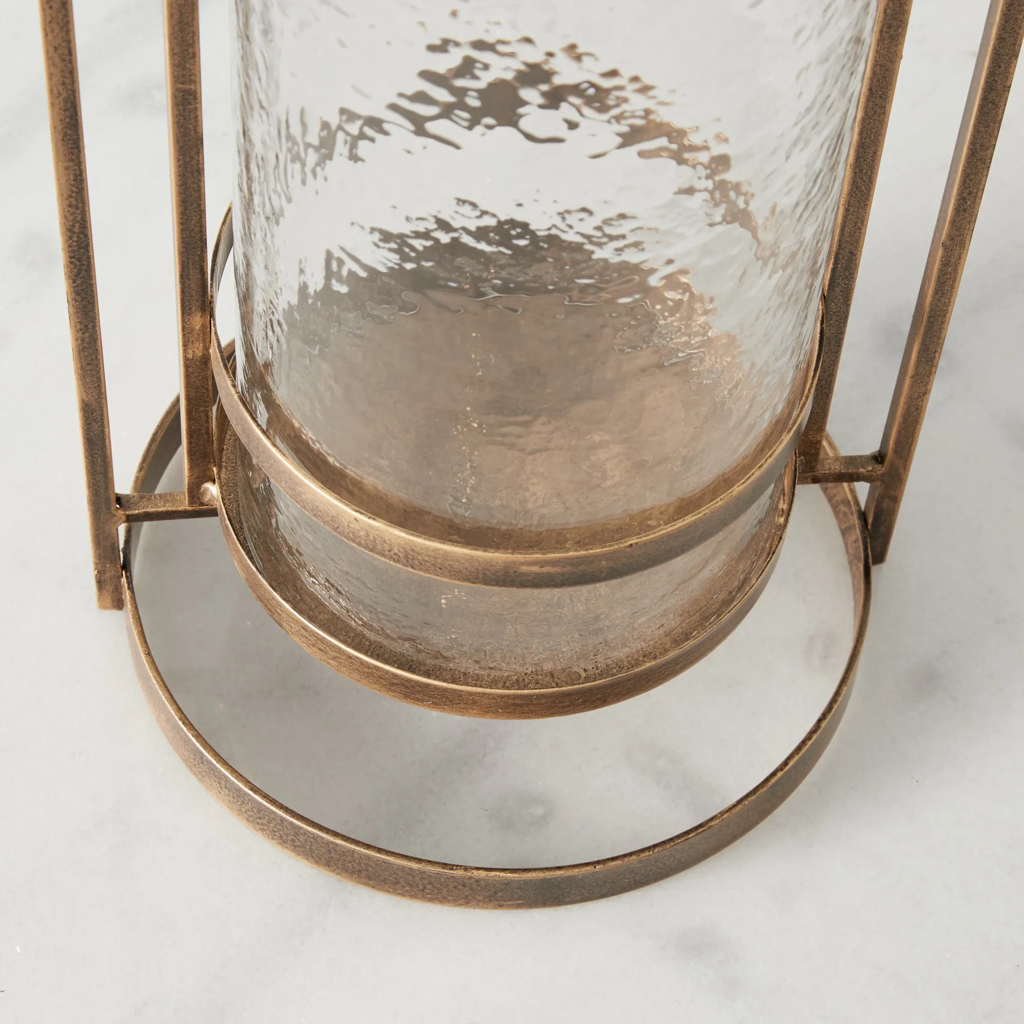 What truly distinguishes the Shania Lantern, however, is its meticulously crafted metal frame. Gilded in a rich dark bronze hue, this frame not only provides a striking contrast to the luminescence of the candle within but also boasts a graceful slim design, making it a statement piece in any decor setting. Additionally, the incorporation of a handle in its design ensures ease of transport, allowing users to effortlessly move the lantern.