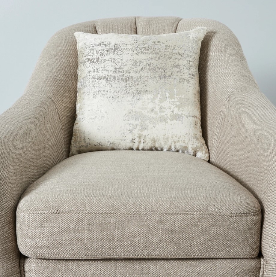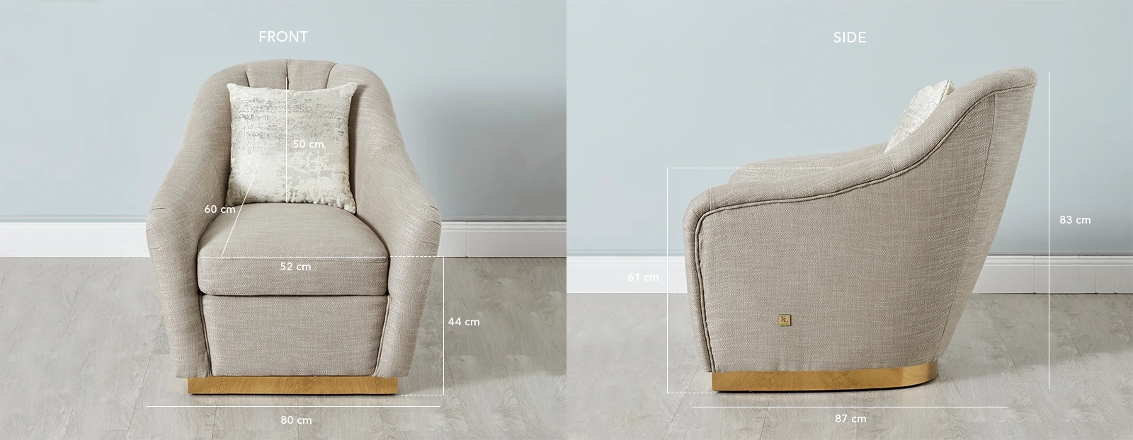 Lounge in comfort on its elegant curvilinear frame. Cushioned channel tufts decorate the back, and golden stainless-steel lines outline the lower seat area, enhancing its luxurious appeal.
