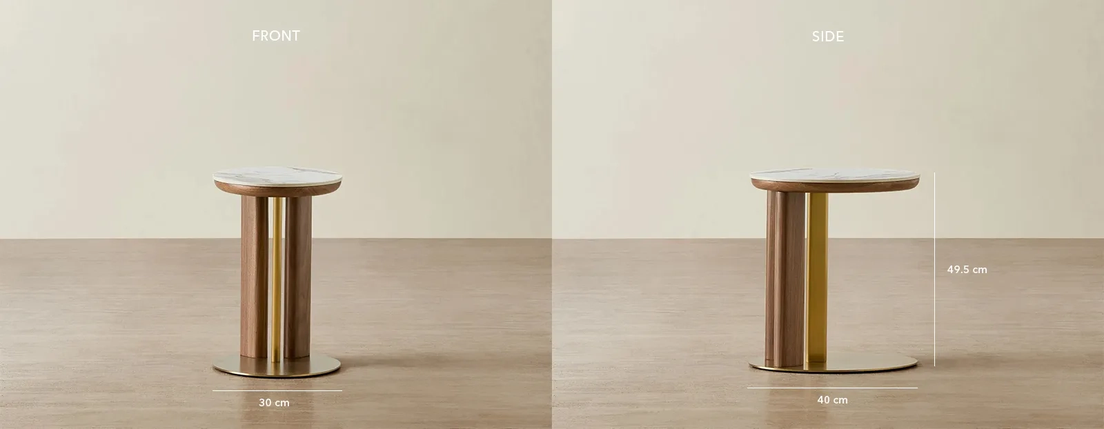 A gilded metal inlay glides onto the base, catching light with a shimmer. The interplay of stone, wood, and gold creates a statement that is both modern and timeless.
