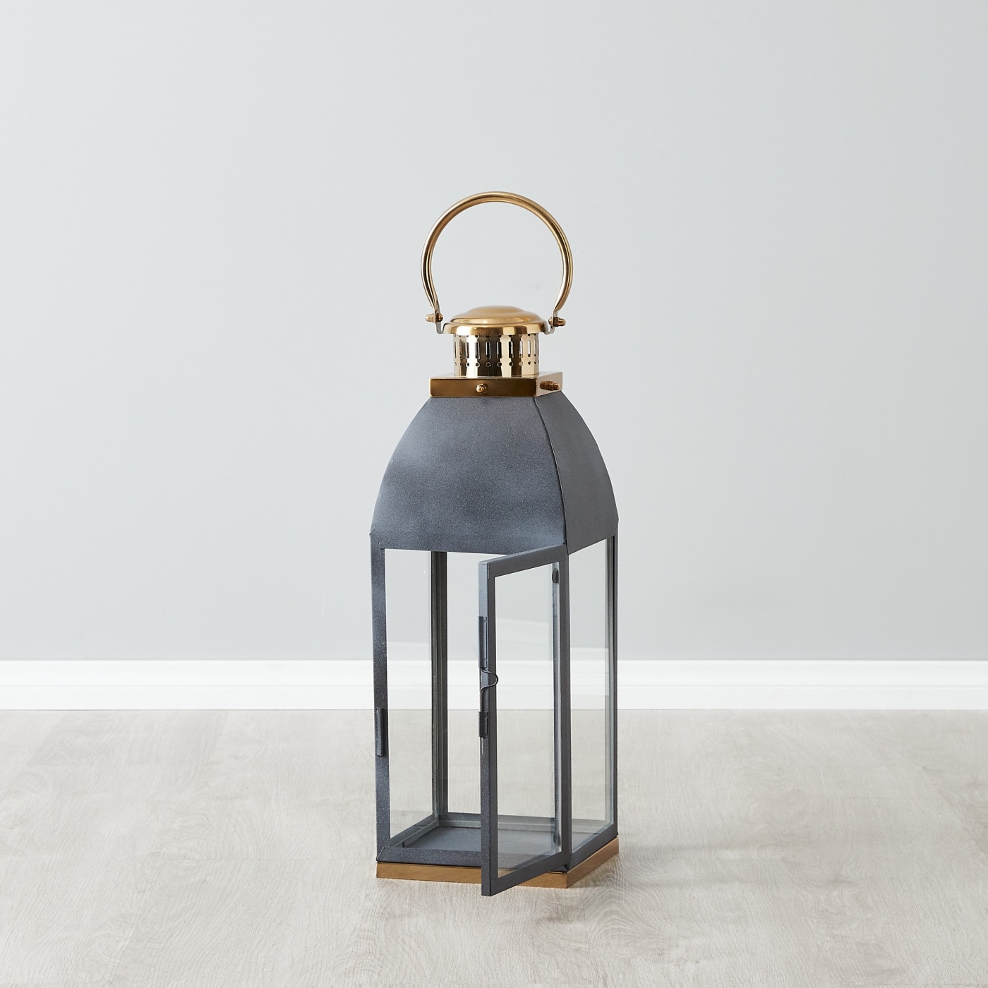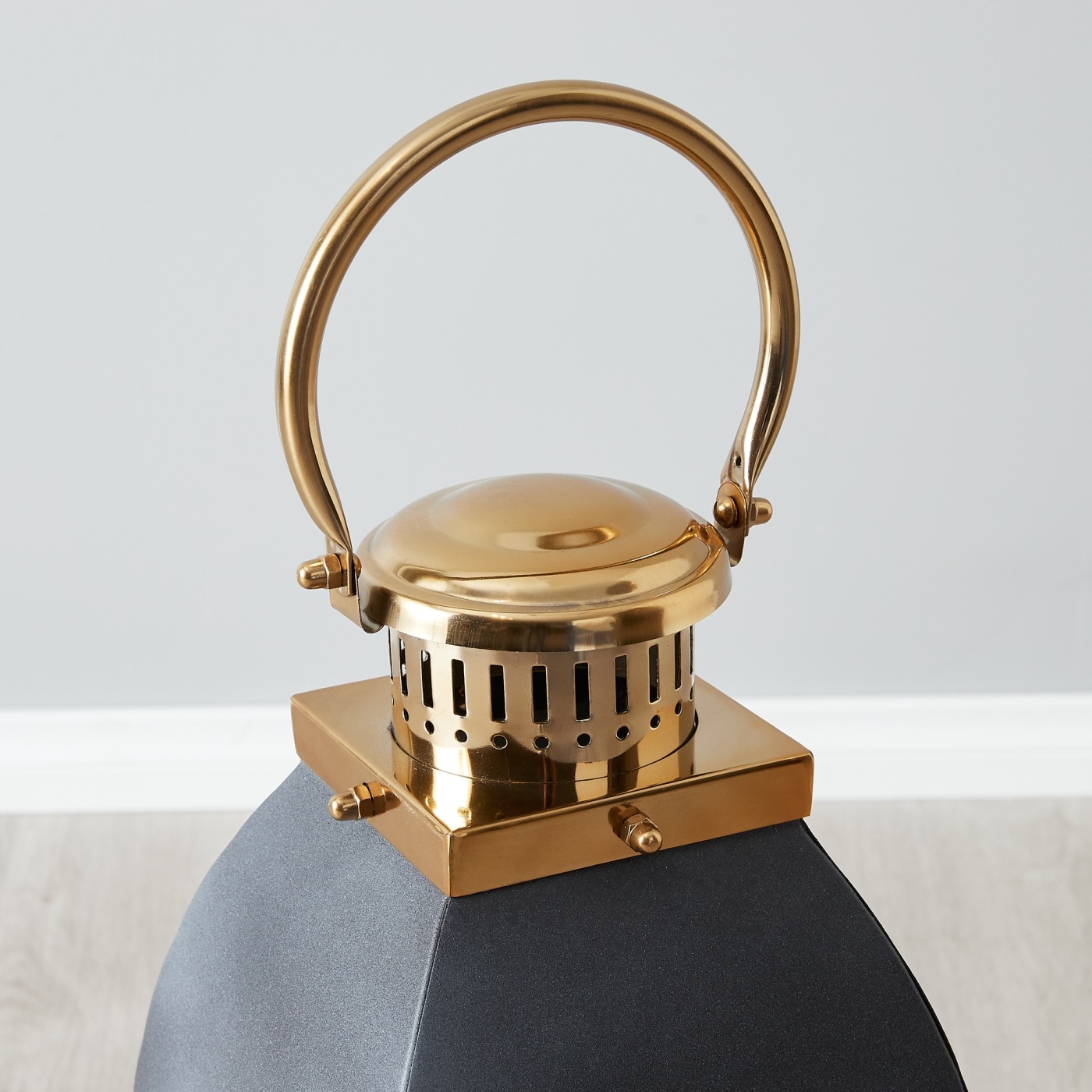 The Stefan allows the candlelight to pass through with its clear glass borders. The Roof of the lantern features an exhaust that also boasts a luxurious golden shade. The handle itself is a work of art and is securely fastened to allow you to carry the lantern to any room around your home. The Stefan Black Stainless Steel Lantern comes in a large and medium-sized variants.