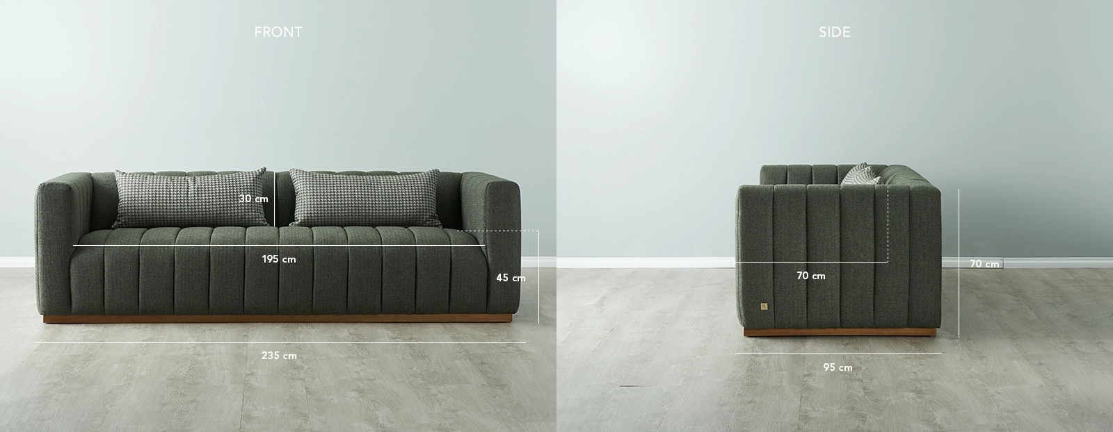 The Storme is adorned with vertical tufts, creating a plush and elegant appearance. Its calming Kombu Green tones add a serene aesthetic, making it an ideal centerpiece for the busier areas of your home.