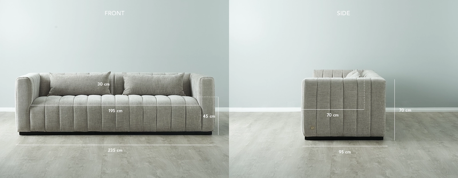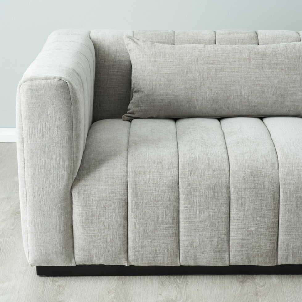 The Storme is adorned with vertical tufts, creating a plush and elegant appearance. Its calming Vintage Grey tones add a serene aesthetic, making it an ideal centerpiece for the busier areas of your home.
