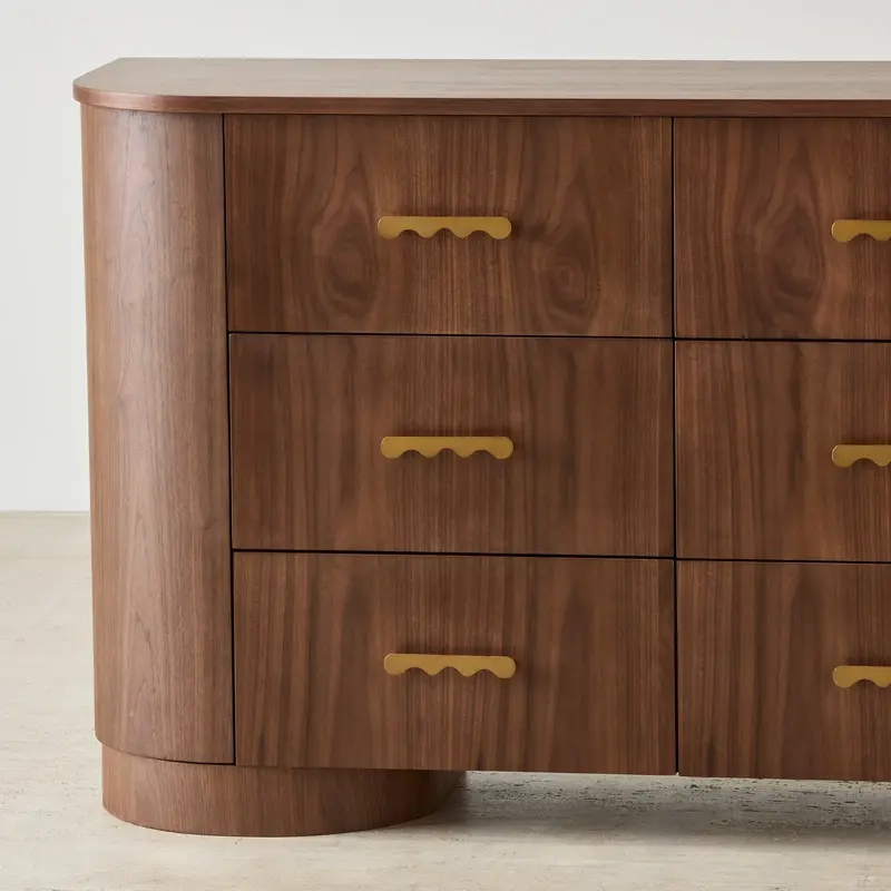 Smooth curves, sturdy wide feet, and a rich mocha walnut finish bring warmth and modern charm to any child’s room. Designed with both play and practicality in mind, it’s made to handle everything from school mornings to story nights.
