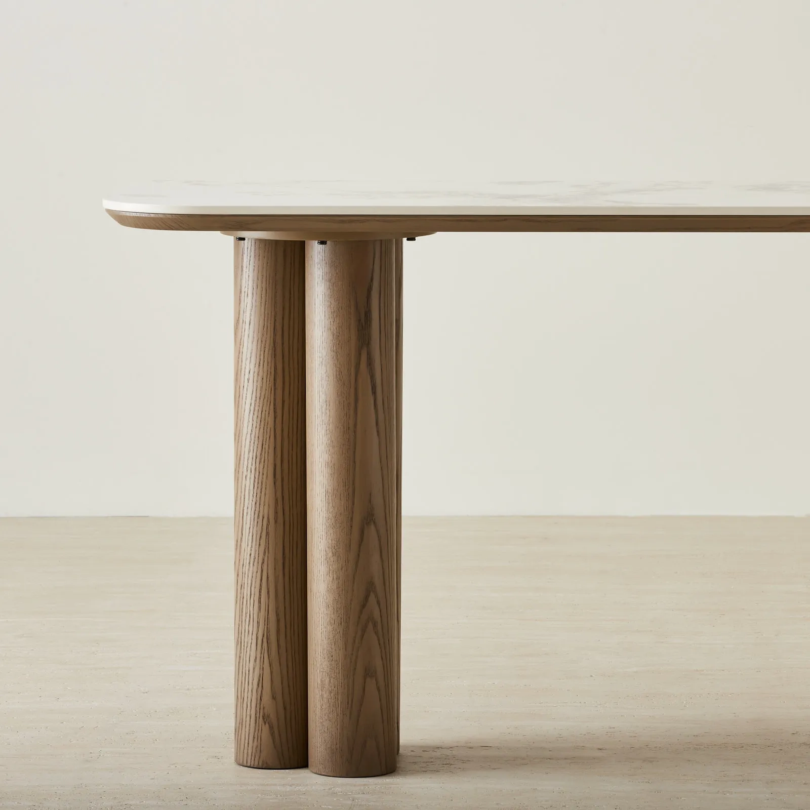 The Terzetto collection embodies a bold yet understated design ethos, seamlessly fitting into the realm of modern contemporary furniture. It merges natural and artificial design elements, intertwining a solid wooden frame with the man-made marble-effect of sintered stone. The collection aims to infuse a sense of tranquility and groundedness through its incorporation of natural motifs. Earthy tones, graceful curves, and textured wooden accents define its natural aesthetic. To exude that sense of luxury that Koala Living is known for, we've chosen a Pandora Brown sintered stone top, characterised by a marbled fusion of rusted brown and grey hues. It comprises a dining table, coffee table, and console table. We aspire for this collection to invigorate your living space with renewed vitality, enduring through many years to come.