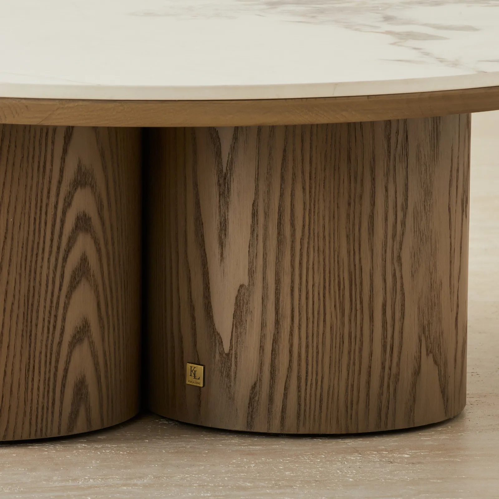 The Terzetto collection embodies a bold yet understated design ethos, seamlessly fitting into the realm of modern contemporary furniture. It merges natural and artificial design elements, intertwining a solid wooden frame with the man-made marble-effect of sintered stone. The collection aims to infuse a sense of tranquility and groundedness through its incorporation of natural motifs. Earthy tones, graceful curves, and textured wooden accents define its natural aesthetic. To exude that sense of luxury that Koala Living is known for, we've chosen a Pandora Brown sintered stone top, characterised by a marbled fusion of rusted brown and grey hues. It comprises a dining table, coffee table, and console table. We aspire for this collection to invigorate your living space with renewed vitality, enduring through many years to come.
