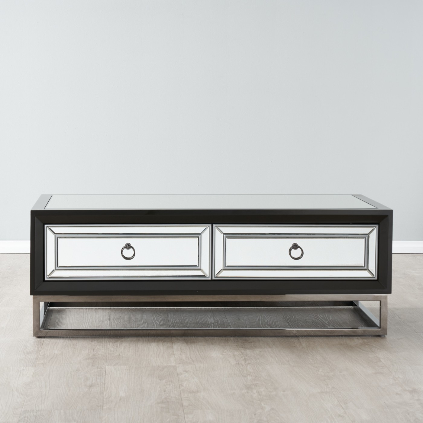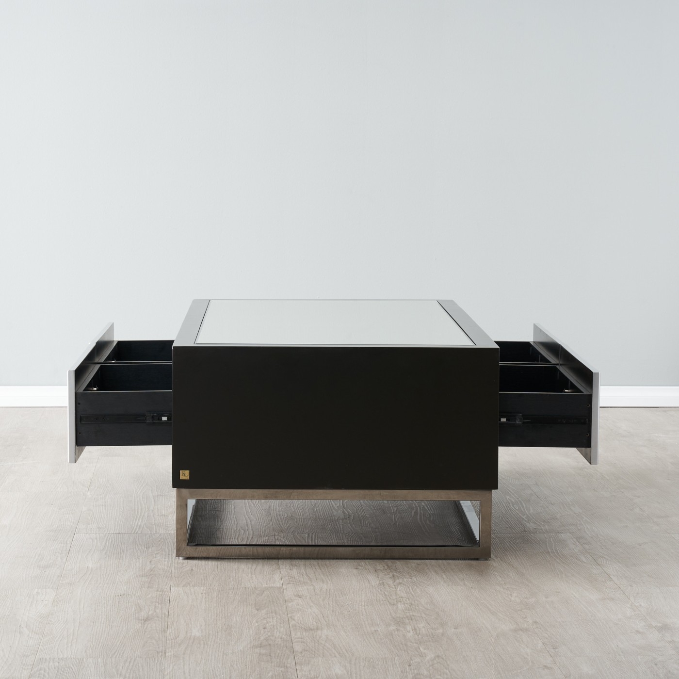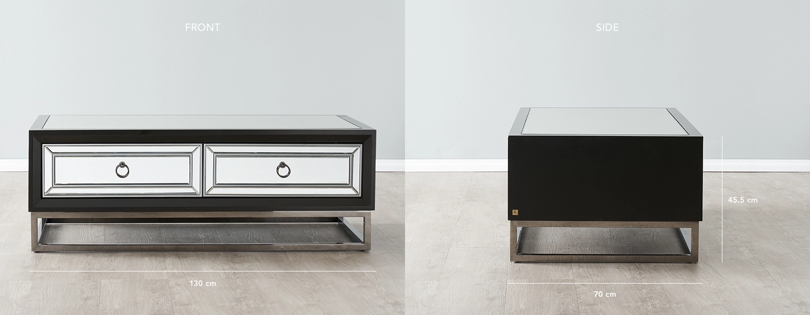 Reflect your living room in a new light with the exquisite Thalia Coffee Table. This majestic piece makes for a fine addition to any living room with its exquisite mirrored panels and striking stand-out design. It features a gorgeous table top that one can use to display their prized books, mementos and more. Its masterfully crafted frame is made from wood of the highest quality and is draped in a contemporary dark shade.