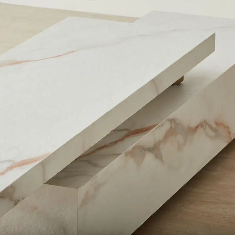The Thames Calacatta Oro Entertainment Unit features a sleek sintered stone surface. Designed for functionality, it offers ample space to organise media essentials while serving as a statement piece.