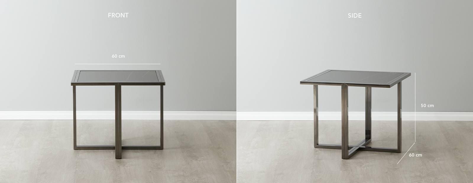 The Titus Black Sintered Stone Side Table adds a luxurious flair to your home with its modern design and stunning colours. Be mesmerized by the Titus' gorgeous sintered stone tabletop that features veins that dance along its outline. Its spacious surface can serve as a worthy pedestal for your favourite decorations and prized keepsakes.
