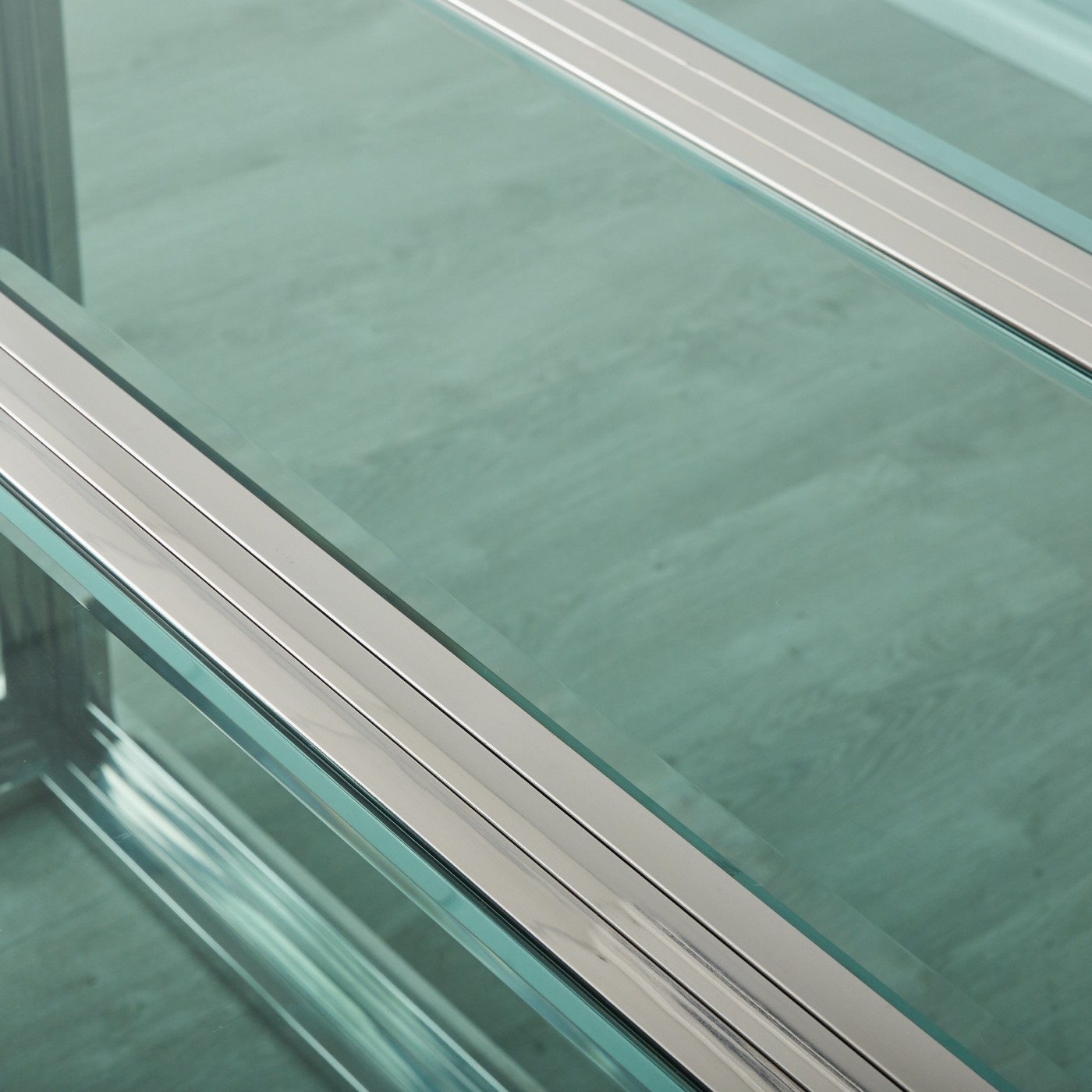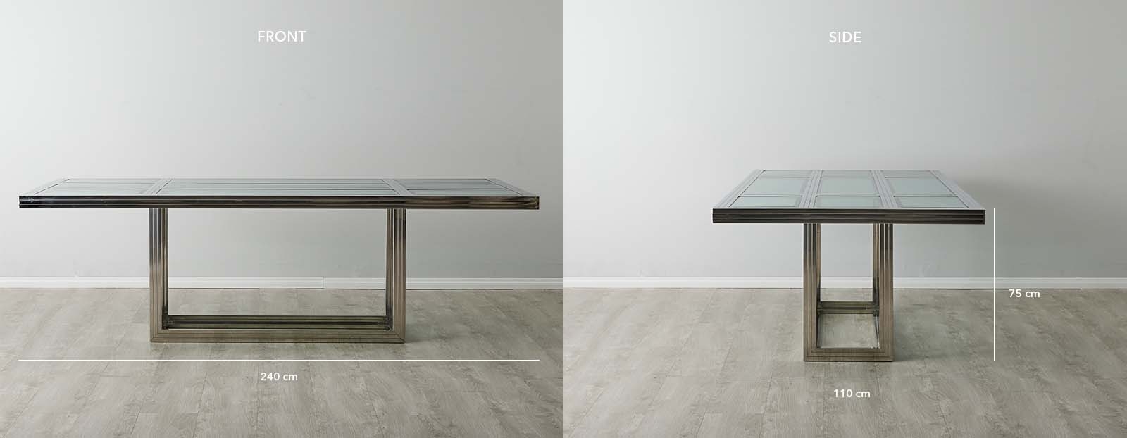 Supported by a robust rectangular stainless steel frame, the Titus Dining Table exudes a sleek and polished look, enhancing the overall aesthetic. The stainless steel finish of the frame beautifully complements the tinted glass, creating a harmonious contrast. Gather your loved ones around this extraordinary dining table and indulge in memorable meals, as the Titus Stainless Steel Dining Table becomes the centrepiece of your dining area. Pair with an ensemble of our gorgeous dining chairs.
