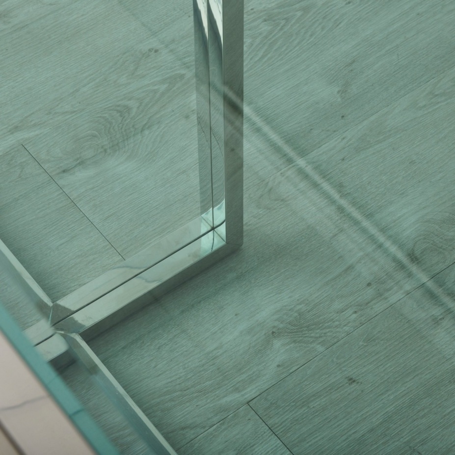 Providing support to the tinted glass tabletop is a masterfully crafted frame of stainless steel that shines in silver. It features four bold corners that converge at the Titus' centre. Its open design plays with light and space to add intrigue to your space. Pair this modern piece with one of our floor rugs and an illuminating floor lamp.