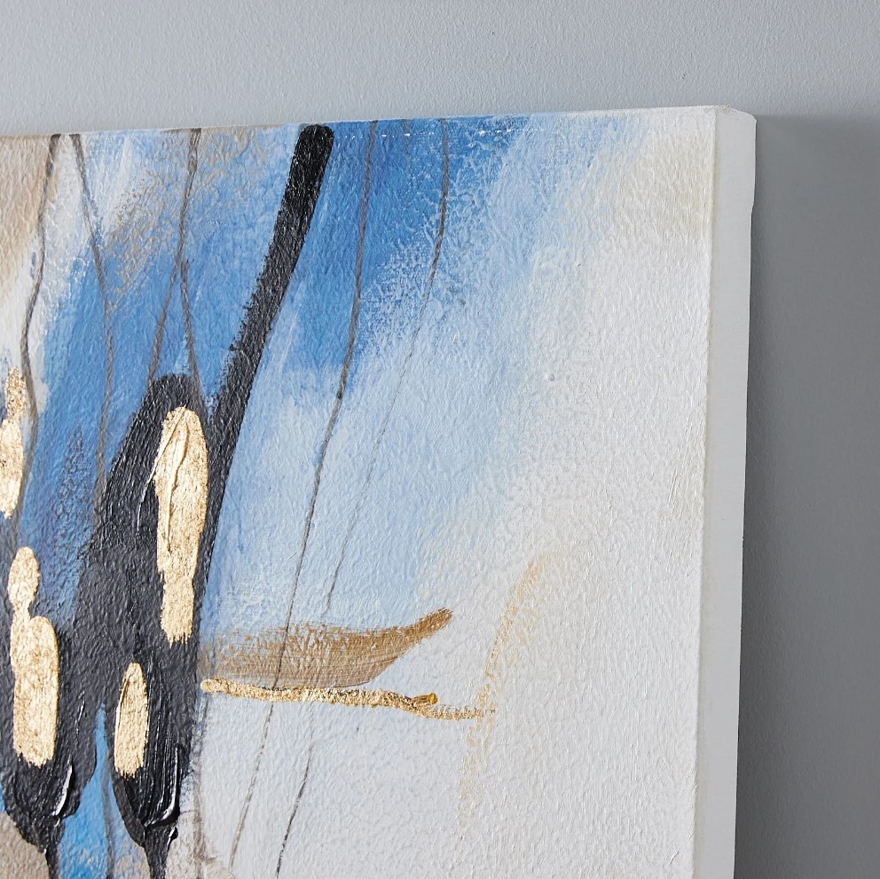 Immersing its audience into a world of unparalleled beauty, the Transcendent Abstract Painting stands as a testament to the power of artistry and color. With each stroke, the canvas comes alive, weaving tales of faraway lands and ethereal dreams. The canvas, swathed in opulent gold, deep blues, enigmatic blacks, and shimmering gold hues, presents a dance of colors that evoke a sense of mystery and wonder.
