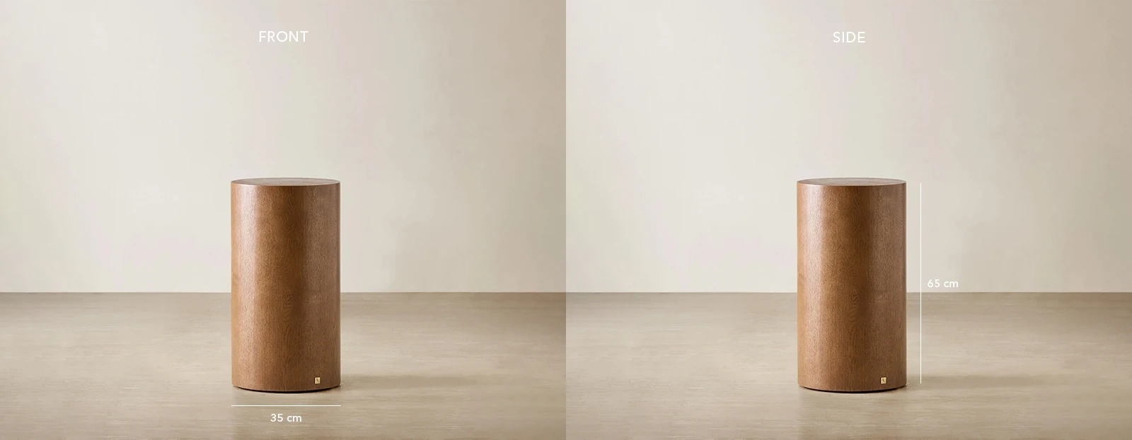 The Trento Plinth features a clean cylindrical form that brings quiet structure to any space. Its minimal silhouette allows it to function effortlessly as a display stand, side table, or sculptural accent.
