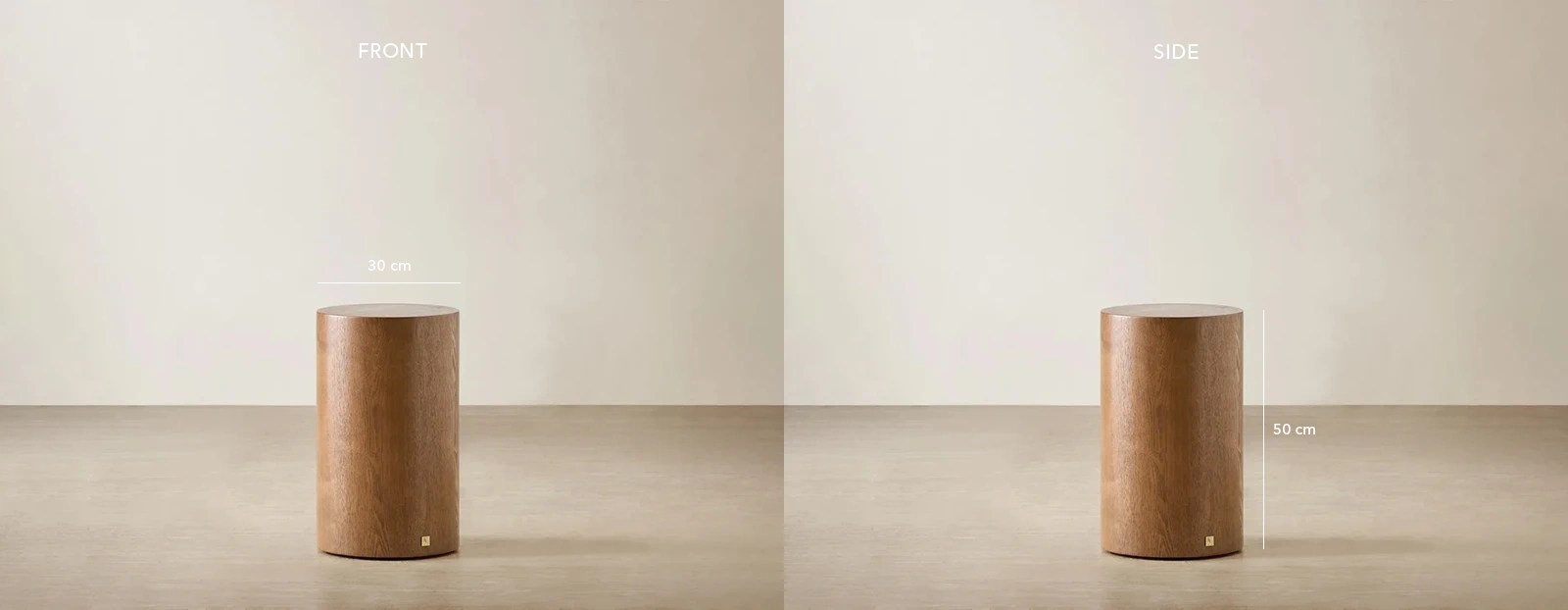 The Trento Plinth features a clean cylindrical form that brings quiet structure to any space. Its minimal silhouette allows it to function effortlessly as a display stand, side table, or sculptural accent.