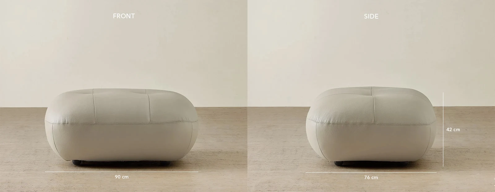 The Trinity Ottoman is wrapped in supple leather that feels as smooth as it looks. Its soft, rounded edges and subtle stitching highlight meticulous craftsmanship and effortless comfort.