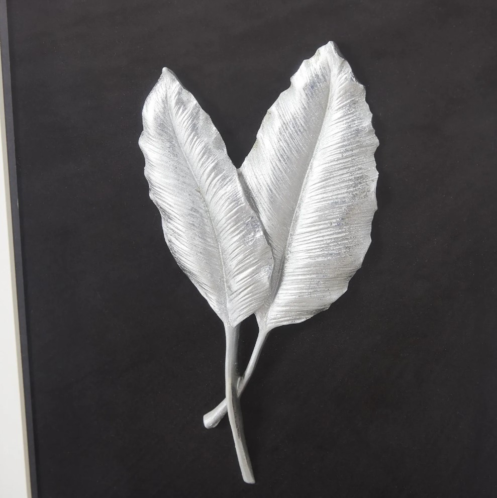 The stark interplay between the silver and black tones exudes a sense of elegance and contemporary sophistication. This piece isn't merely decorative; it evokes a mood, creating an atmosphere of quiet reflection and admiration for the intricate wonders of nature.