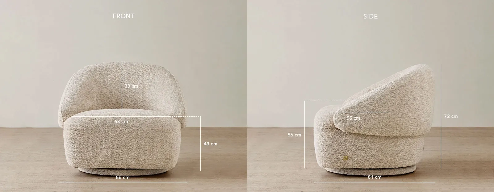 The textured woven fabric in a mid beige tone adds natural warmth and subtle depth to the design. Balanced and sculptural, the Verage offers both timeless style and effortless comfort.