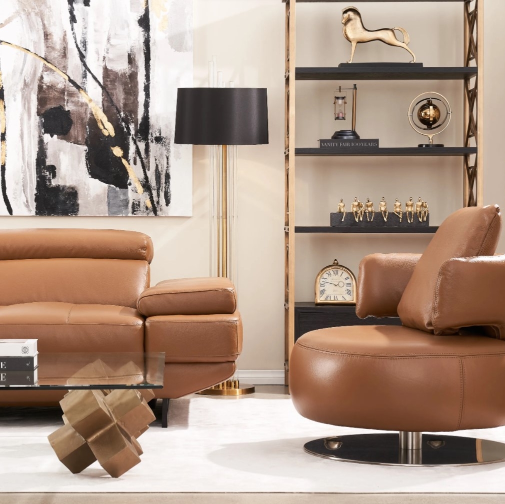 Our Vermont Chairs immediately catch your eye with their inviting design and plush comfort. Upholstered in savannah brown leather, they bring a classic and sophisticated touch to any space with their semi-circular frame that envelops users.