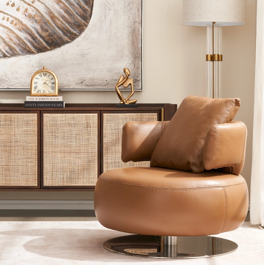 Vermont Savannah Brown Leather Swivel Occasional Chair