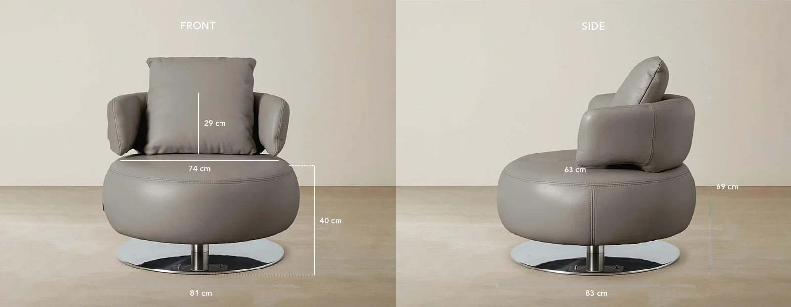Vermont Warm Stone Grey Leather Swivel Chair - Silver Stainless Steel Leg
