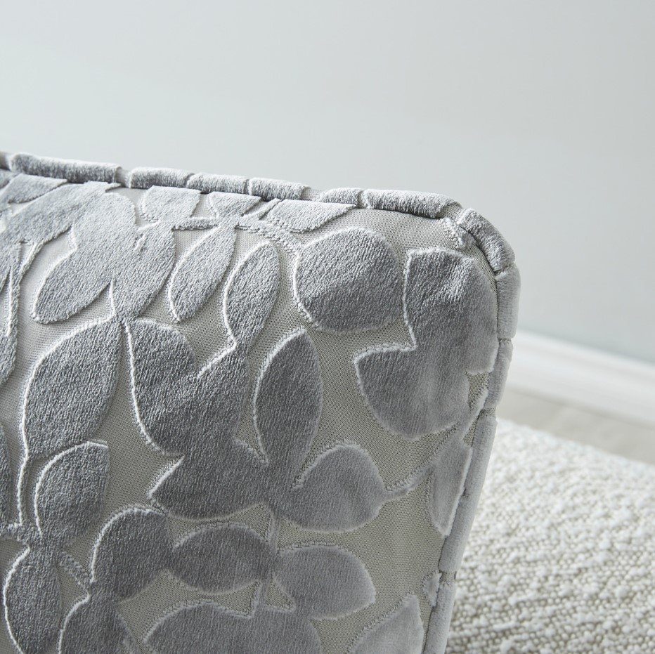 Crafted with the softest velvet, the Vesper Cushion offers an unmatched tactile experience, inviting you to sink into its sumptuous embrace. The true charm of this cushion lies in its stunning motif – a delicate silhouette of leaves, artistically rendered in elegant shades of grey.
