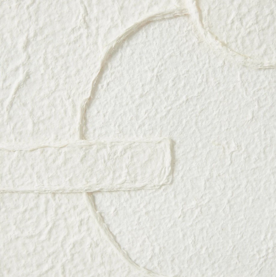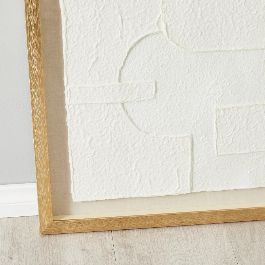 The textured look of the paper pulp adds a depth of character to the piece. The unevenness of the paper pulp, with its hills and valleys, plays with light and shadow, giving the artwork a dynamic that changes with the viewer's perspective. Encasing this study in texture and form is a golden-colored frame that speaks of refinement and sophistication.