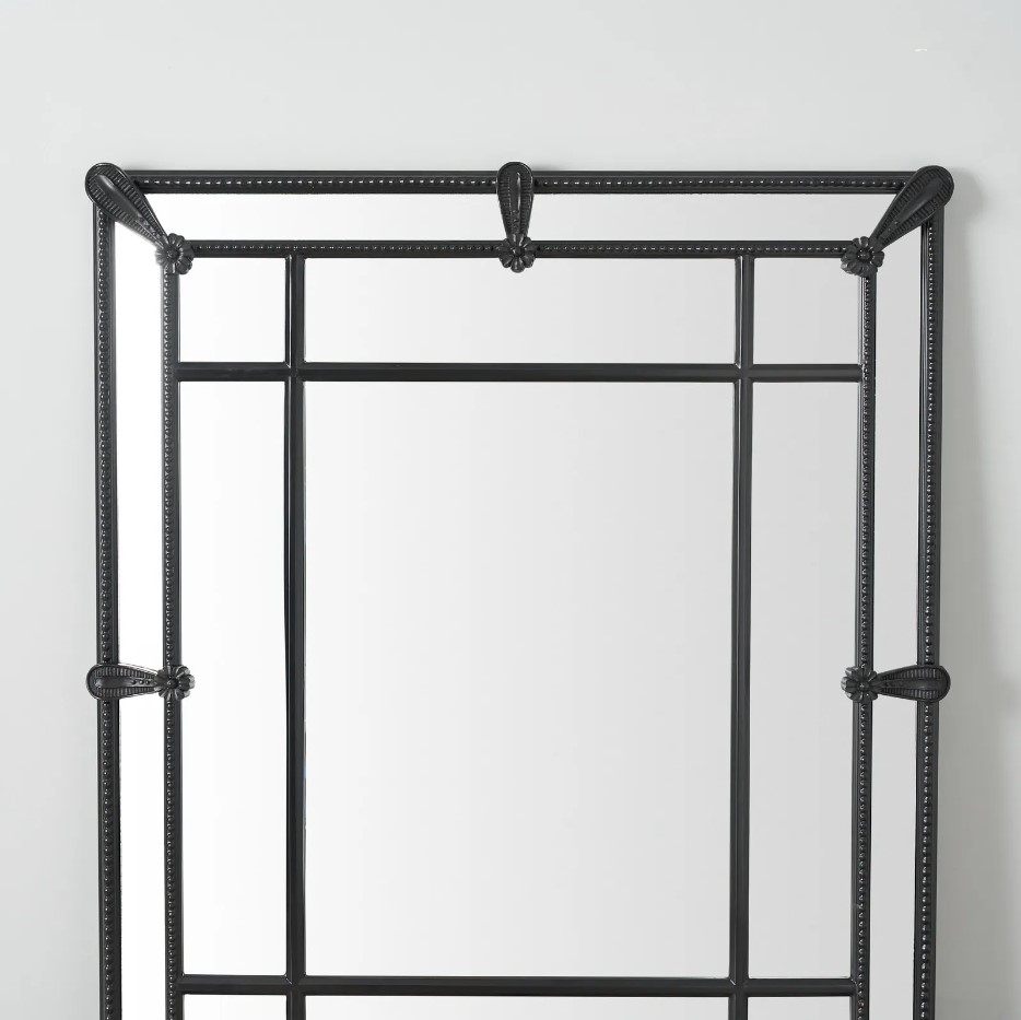 What truly distinguishes the Von mirror is its ornamental overlay, which beautifully harmonizes modern design with classic aesthetics. The black borders, intricate and bold, resonate with an understated yet commanding presence. This stunning design is a reflection of refined taste and a nod to artistic expression.