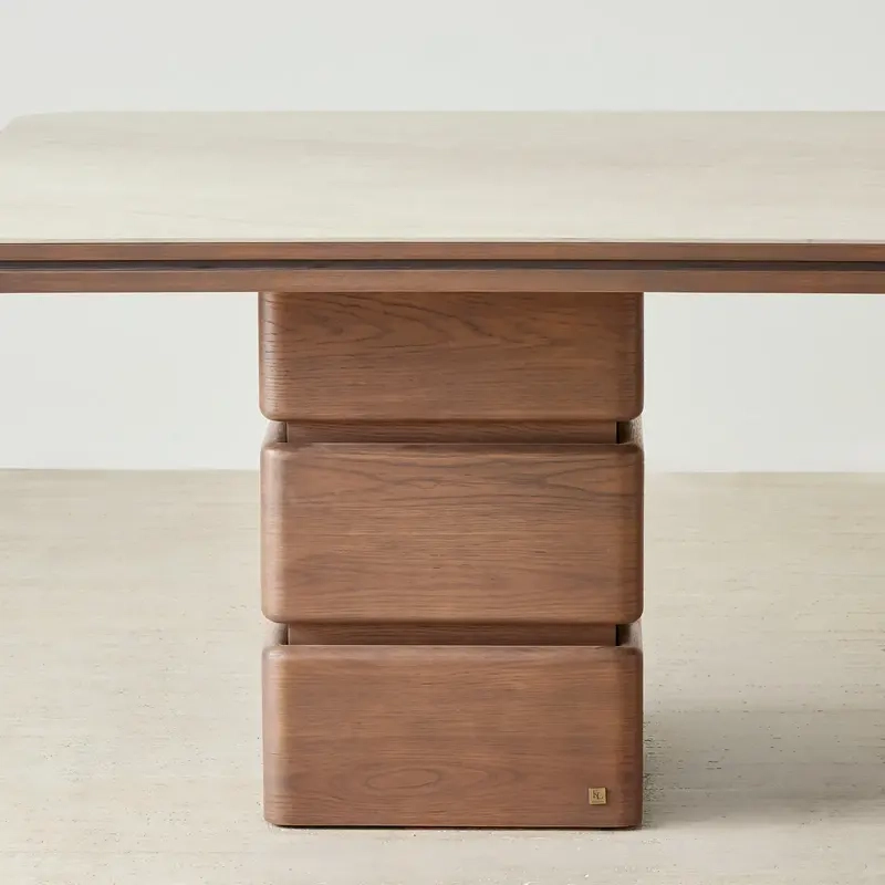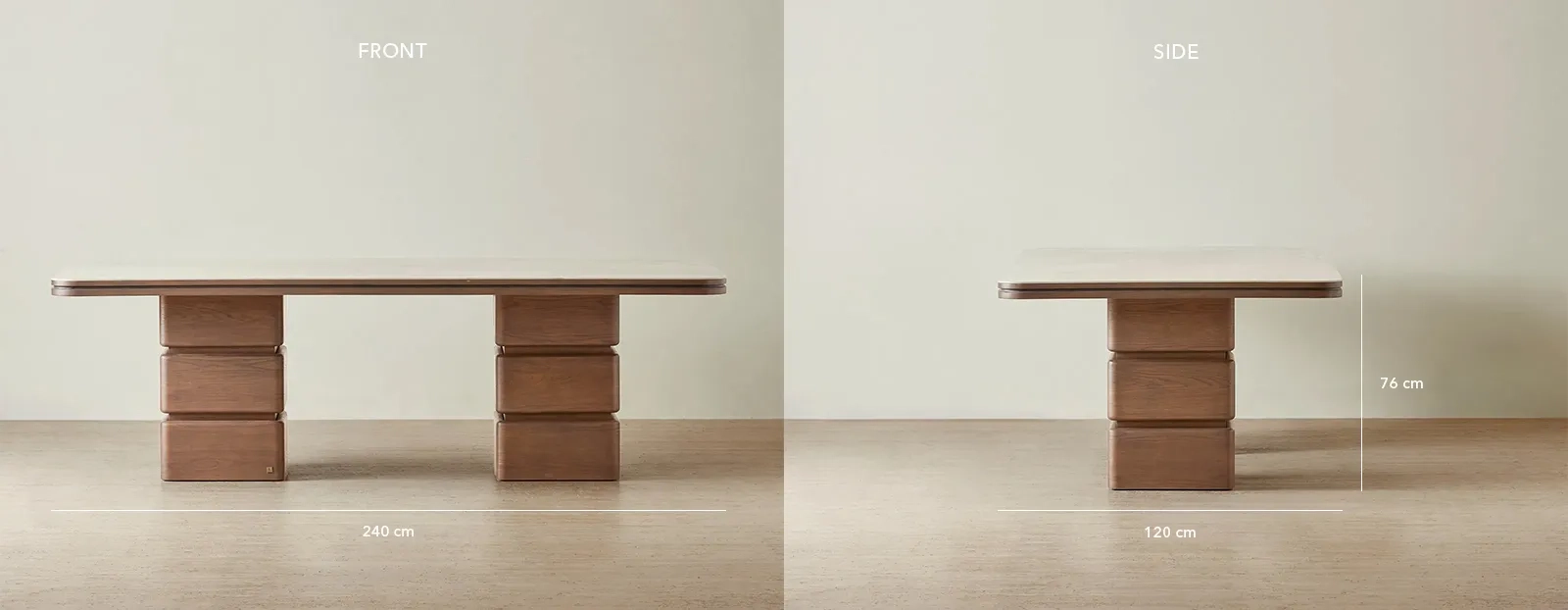 Resting on a sculptural walnut brown wooden base, it blends presence with elegance. It seats 8 to 10 with ease, creating space for family feasts and lively gatherings.