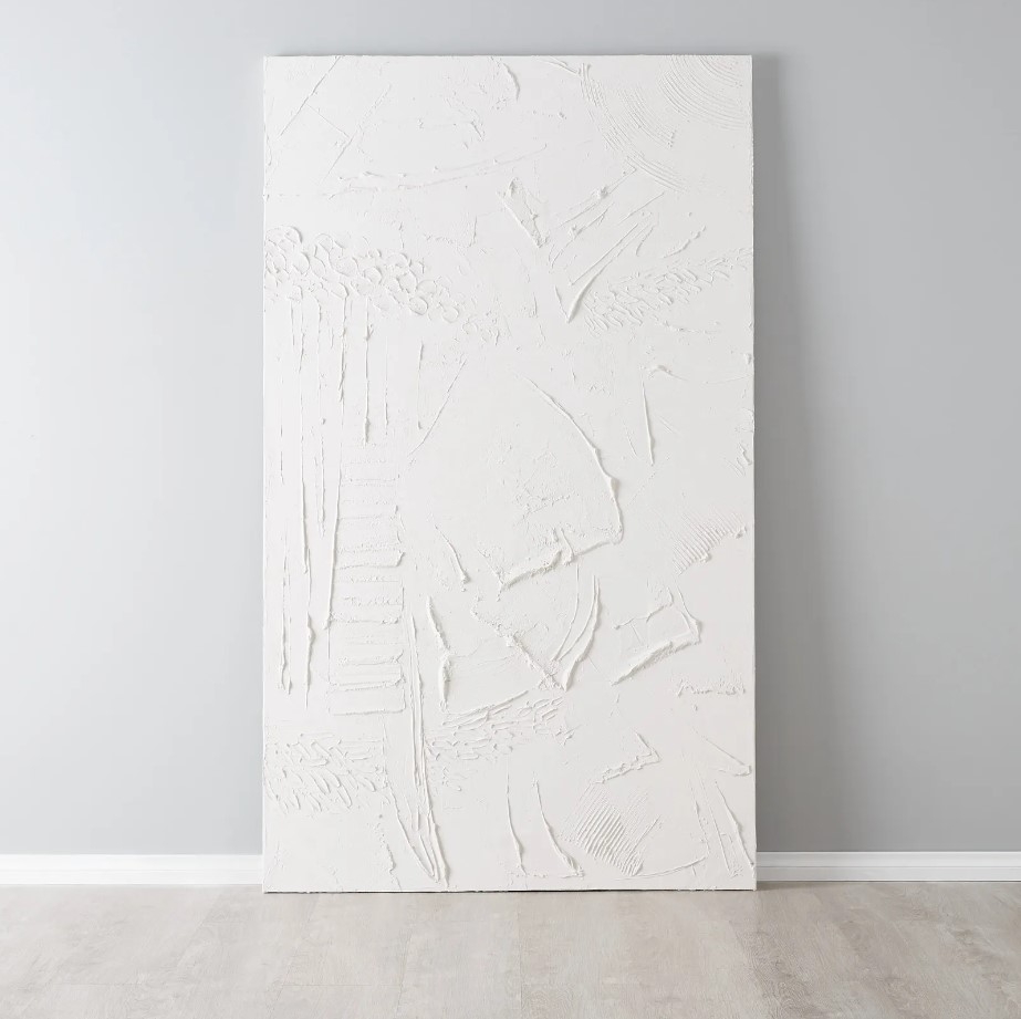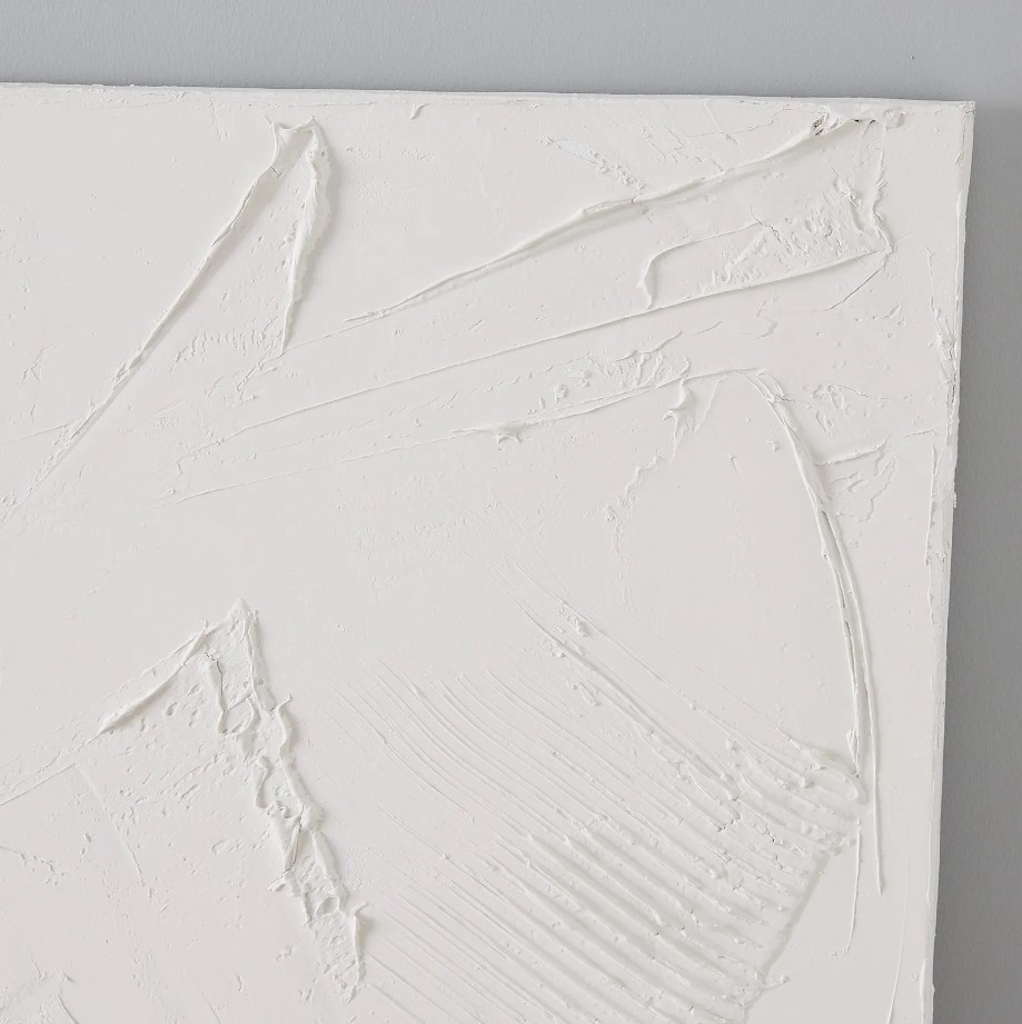 The White Textured Abstract Painting is an enigmatic and sophisticated artwork that encapsulates the beauty of ambiguity in its purest form. This all-white canvas becomes a silent symphony of texture, with random textured lines and dashes that rise from the surface like the soft murmurs of a dream just beyond the edge of memory.