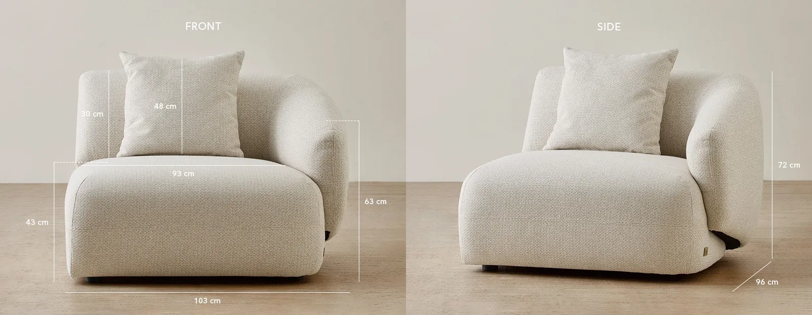 Designed as part of the modular Willow collection, this right arm module can be used alone as a cosy single seat or combined with other pieces to create your ideal configuration.